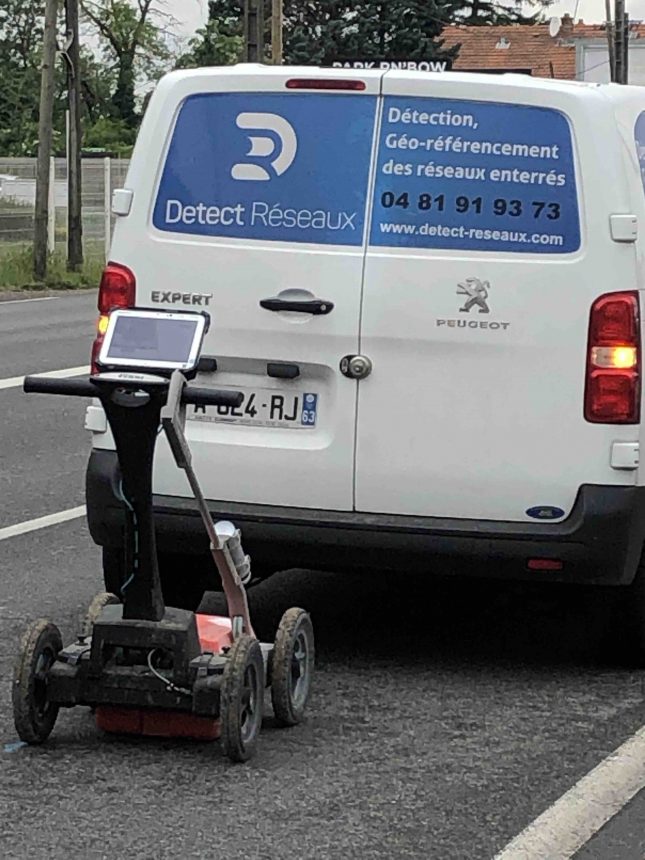 En amont de la création de cette piste, afin de préparer ses travaux d’aménagement, il était nécessaire d’effectuer la détection en investigations complémentaires et la localisation des réseaux enterrés : notre équipe intervient pour les accomplir, avec réactivité et respect des bonnes pratiques de sécurité (pour la circulation, et pour nos techniciens).