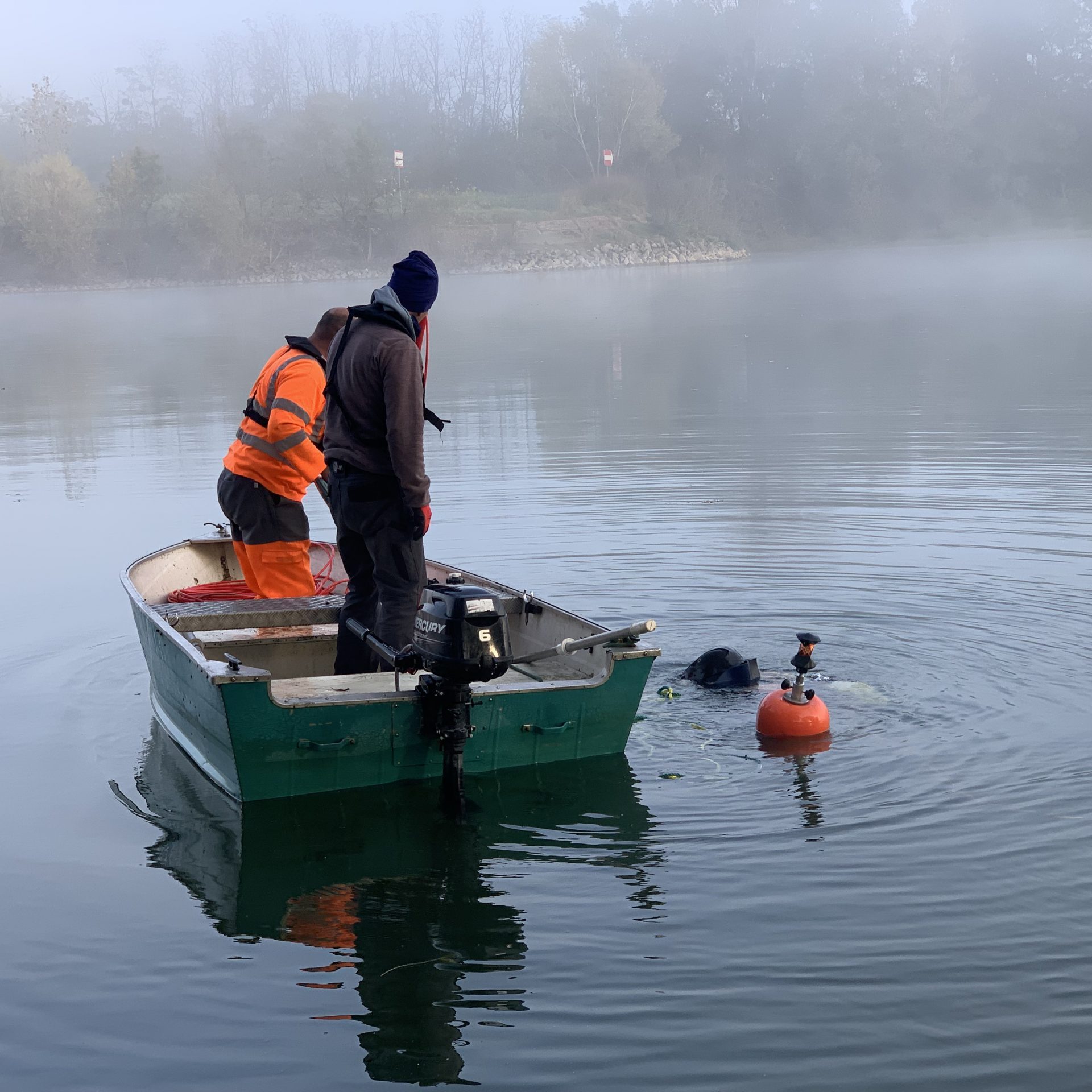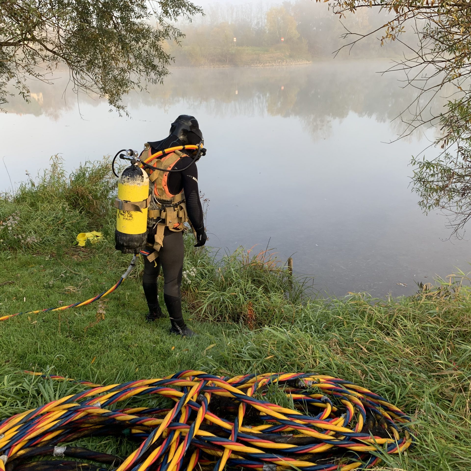 L’équipe de la Côte d’Or a été sollicitée afin de rechercher un fourreau de fibre optique sous la Saône.